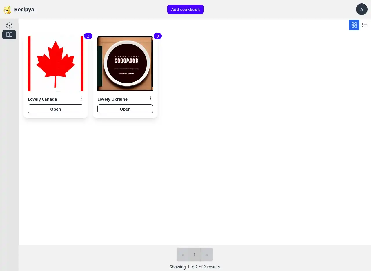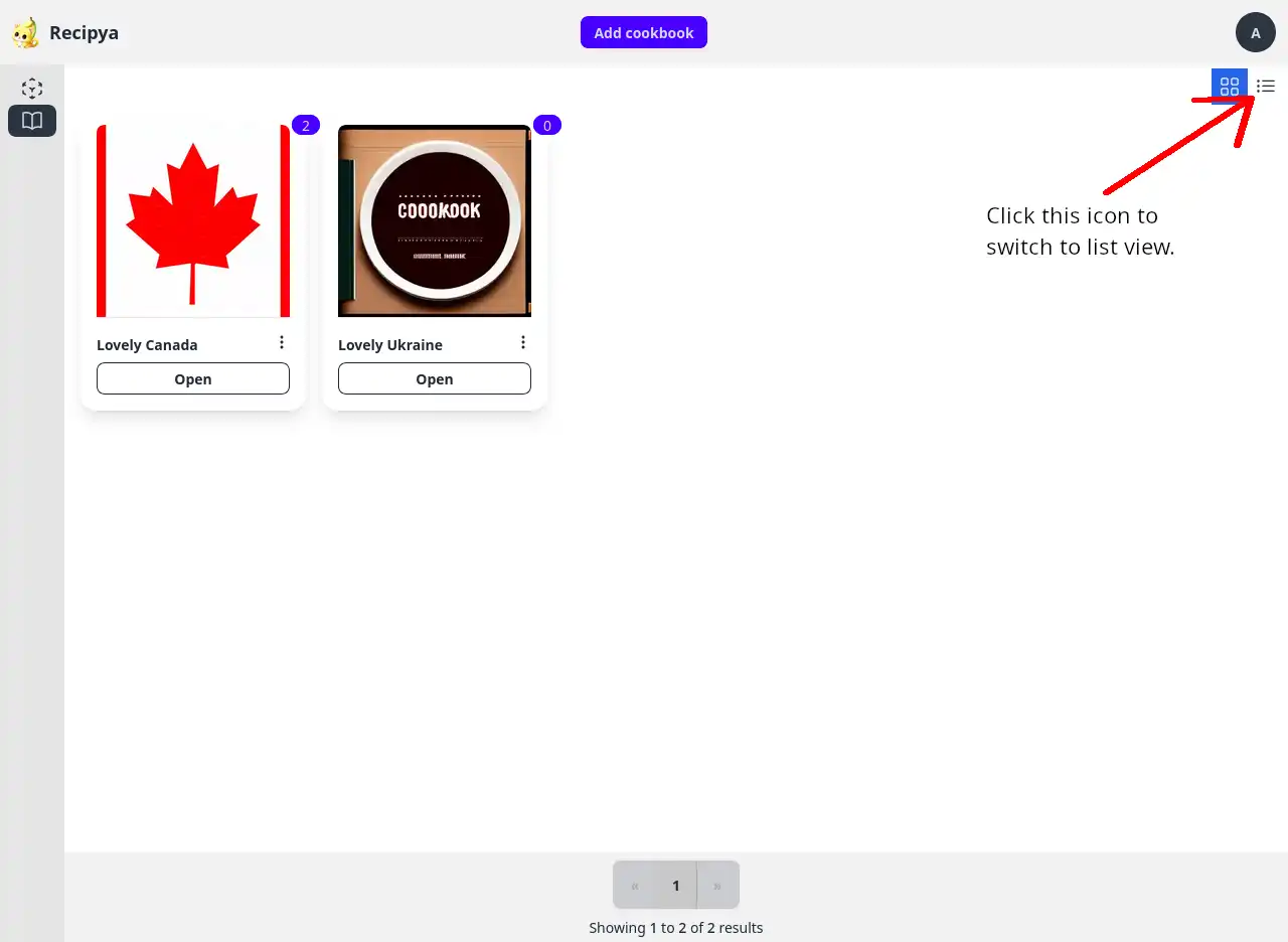 The cookbooks can be displayed in the following modes: