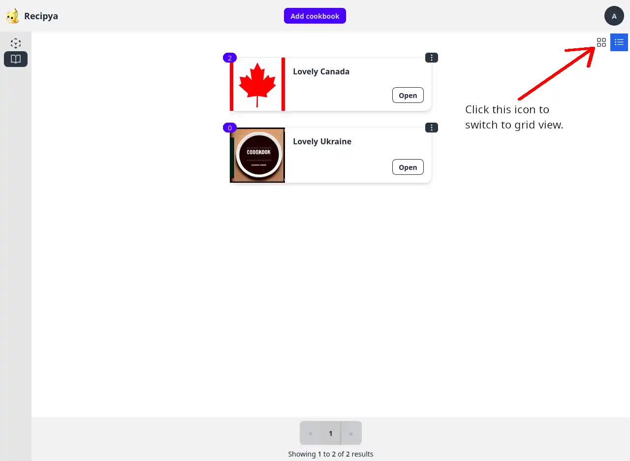 Cliquez sur l’image d’un livre de recettes pour la mettre à jour. Vous serez alors invité à utiliser le sélecteur de fichiers du système d’exploitation pour sélectionner une image.