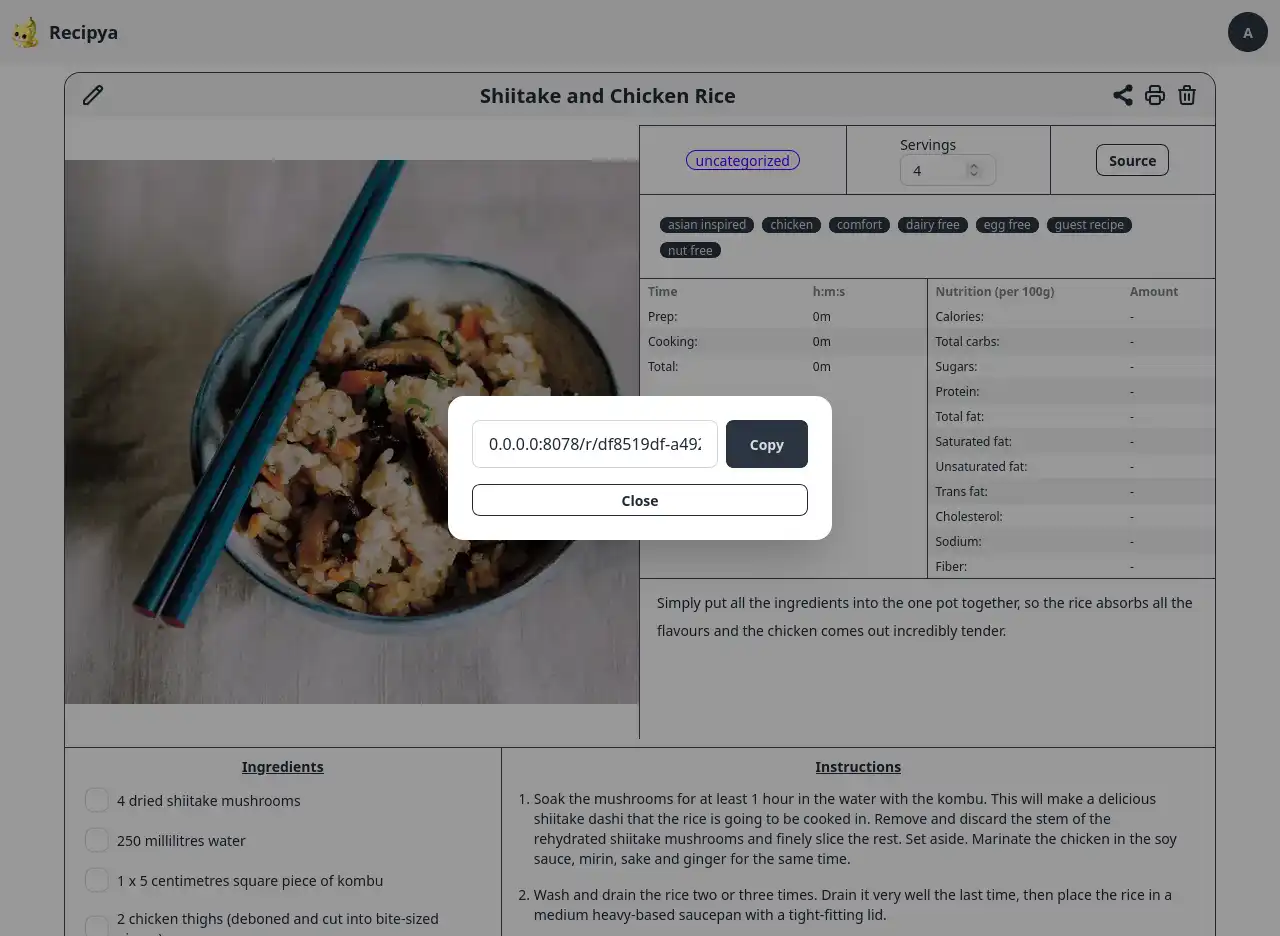 Une recette peut être partagée avec toute personne disposant du lien de partage.