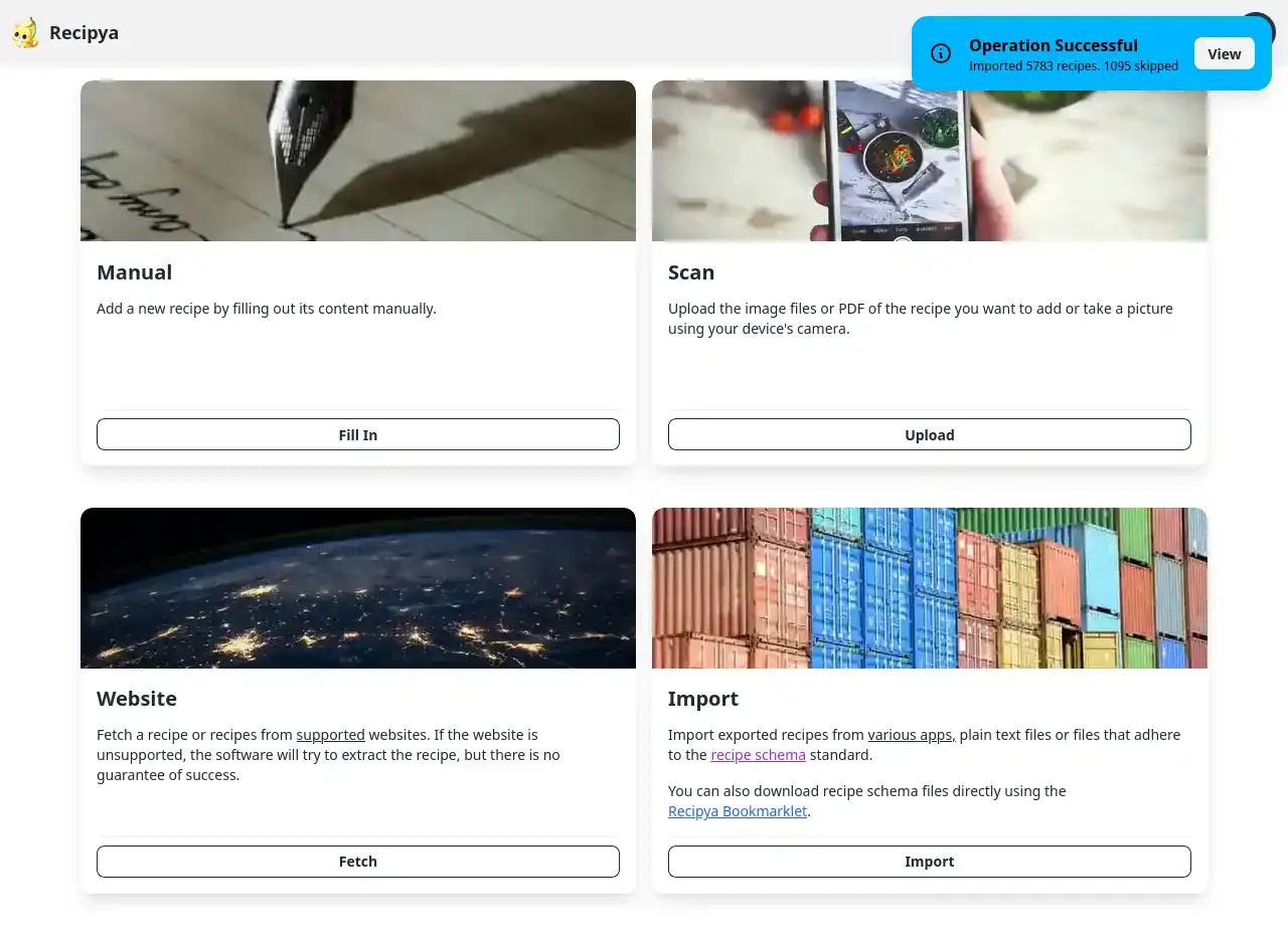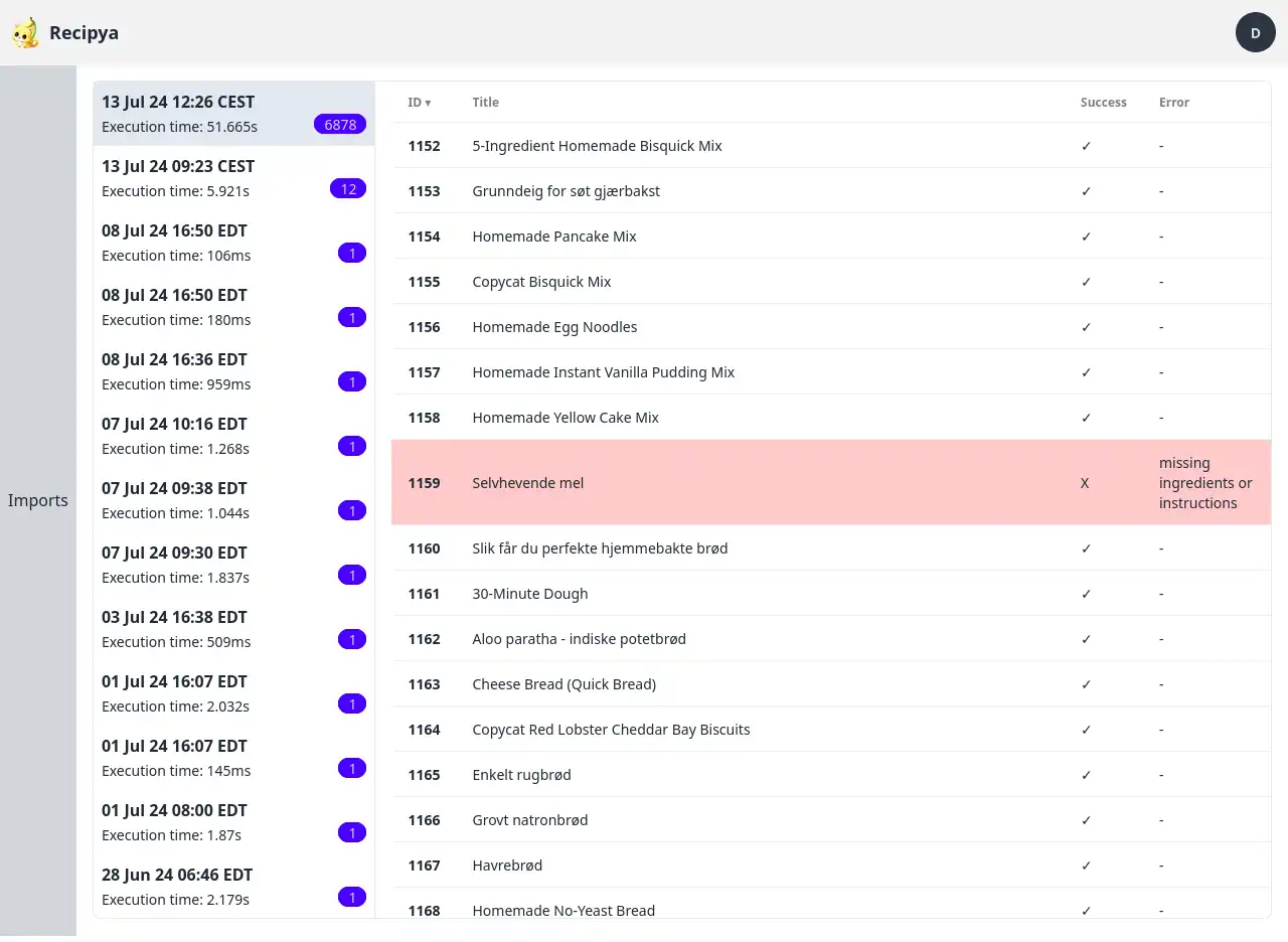 - Execution time : le temps nécessaire à l’importation des recettes.